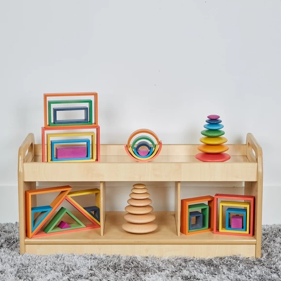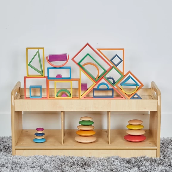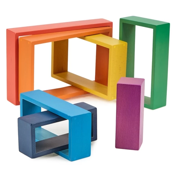 Rainbow Architect Rectangles are beautiful smooth solid beechwood nesting rectangles in the seven colours of the rainbow. They have a natural finish to show the grain of the wood, with the inner block a solid 3D rectangle.