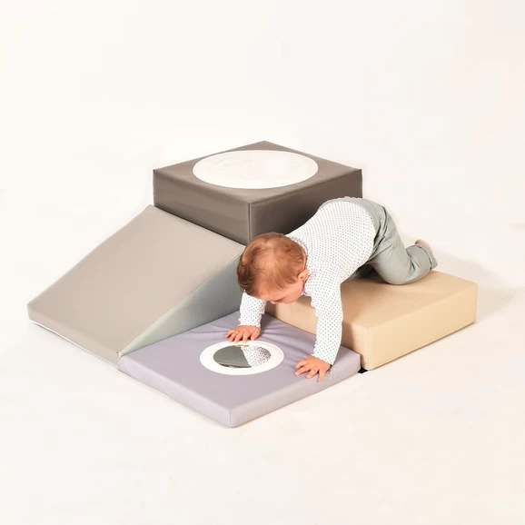 The Toddler Explorer Soft Play Set allows toddlers and infants to play, crawl and climb without harming themselves. Made from a collection of 400mm soft play modules/pieces offered in varied combinations to make up different sets. Each modular piece joins on the underside by means of a hook and loop system, whilst the outer cover has a wipe clean surface. Ideal in any nursery setting! This set is is sized for very young but mobile children, crawling and toddling and are designed for use in adult supervised activities in nursery schools and other childcare institutions. This four piece set is suitable for temporary/occasional use outside (not storage & not use in wet conditions due possible ingress of water through seams) and for permanent use and storage indoors. Exclusive to Hope Education. Age Suitability 12 Months +