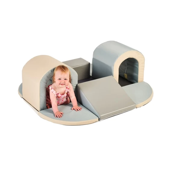 The Toddler Tunnel Soft Play Set allows toddlers and infants to play peek-a-boo, crawl and explore without harming themselves. Made from a collection of 400mm soft play modules/pieces offered in varied combinations to make up different sets. Each modular piece joins on the underside of each component by means of a hook and loop system, whilst the outer cover has a wipe clean surface. Ideal in any nursery setting! The nine piece soft play set is designed for very young but mobile children, crawling and toddling for adult supervised activities in nursery schools and other childcare institutions. It is also suitable for temporary/occasional use outside (not storage & not use in wet conditions due possible ingress of water through seams) and for permanent use and storage indoors. Exclusive to Hope Education. Age Suitability 12 Months +Â