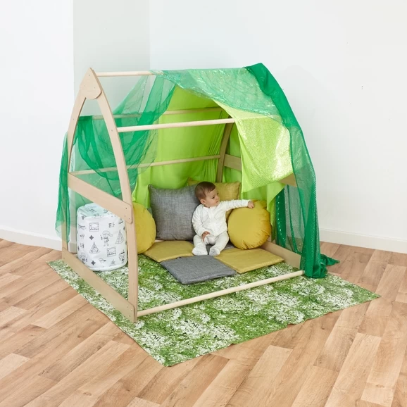 A simple, versatile wooden den frame, suitable for under 3’s. A great resource for creating a cosy den space for younger children or spark imagination by dressing with themed den fabrics. Portable and lightweight material makes it easy to manoeuvre. Frame not to be used for climbing on. Fabrics and mat supplied separately.