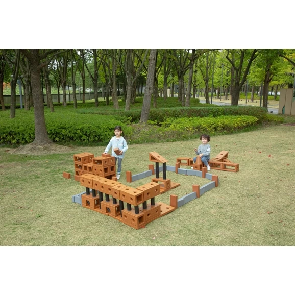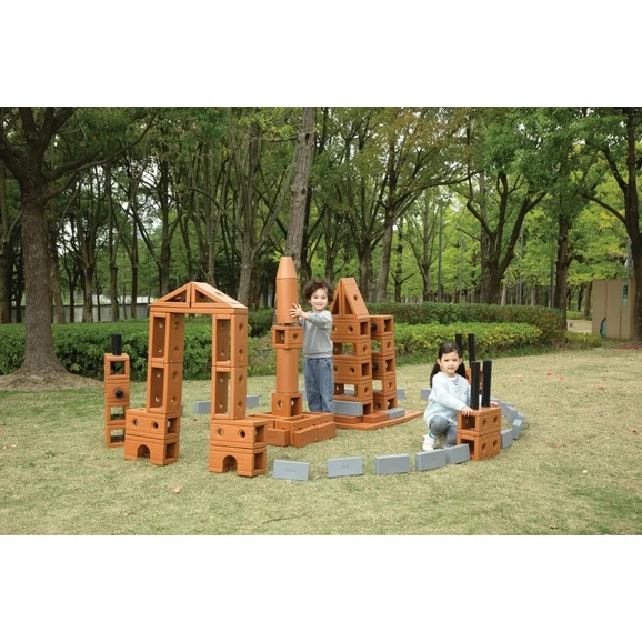 The perfect outdoor construction set that supports activities such as physical, cognitive, social, and emotional development. The uniquely designed construction blocks include plug in joint blocks that link blocks together, meaning that children can build more stable and stackable structures and enhance their building and creativity skills.