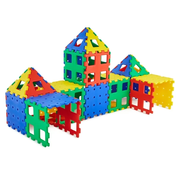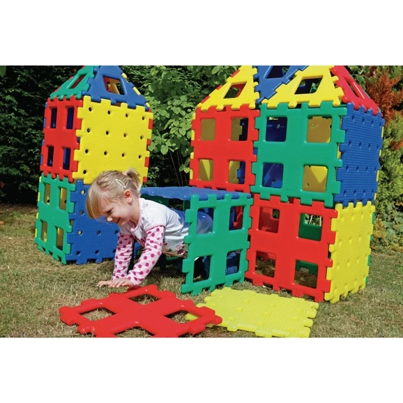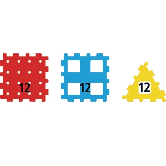 This 36 piece set contains: 12 Squares with 16 Holes, 12 Squares with 4 Holes, 12 Triangles and a guide. Sides of squares measure 40.5cm. Age 2+.